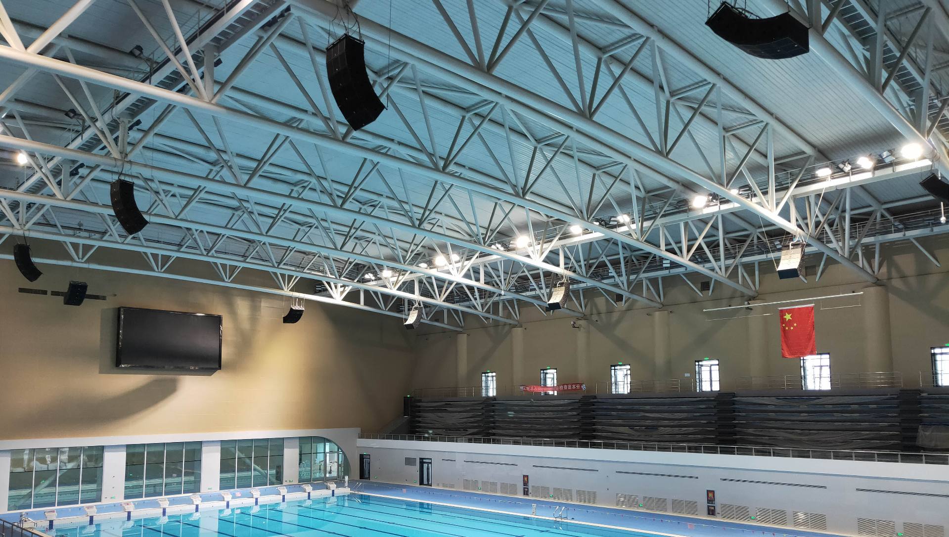 湖山智慧場館提供全面的聲光電集成解決方案,完美契合體育賽事的觀賽體驗,同時顯著提升演唱會、文藝演出等文化活動的聲光品質至頂尖水平。采用的高壓波導加載傳輸技術確保了高音部分長期使用的穩(wěn)定可靠,并融合雙渦輪、雙波導核心技術,有效增強中音的遠距離傳播能力。其組合式四分頻系統(tǒng)能根據(jù)不同應用場景預設最佳聲場模式,實現(xiàn)環(huán)境的靈活適配。此外,系統(tǒng)支持物聯(lián)網(wǎng)平臺管理,便于遠程操控與實時監(jiān)控。湖山場館擴聲系統(tǒng)以其高輸出功率、卓越的抗干擾性能及無縫低延遲傳輸,廣泛適用于各類文體場館的擴聲需求。